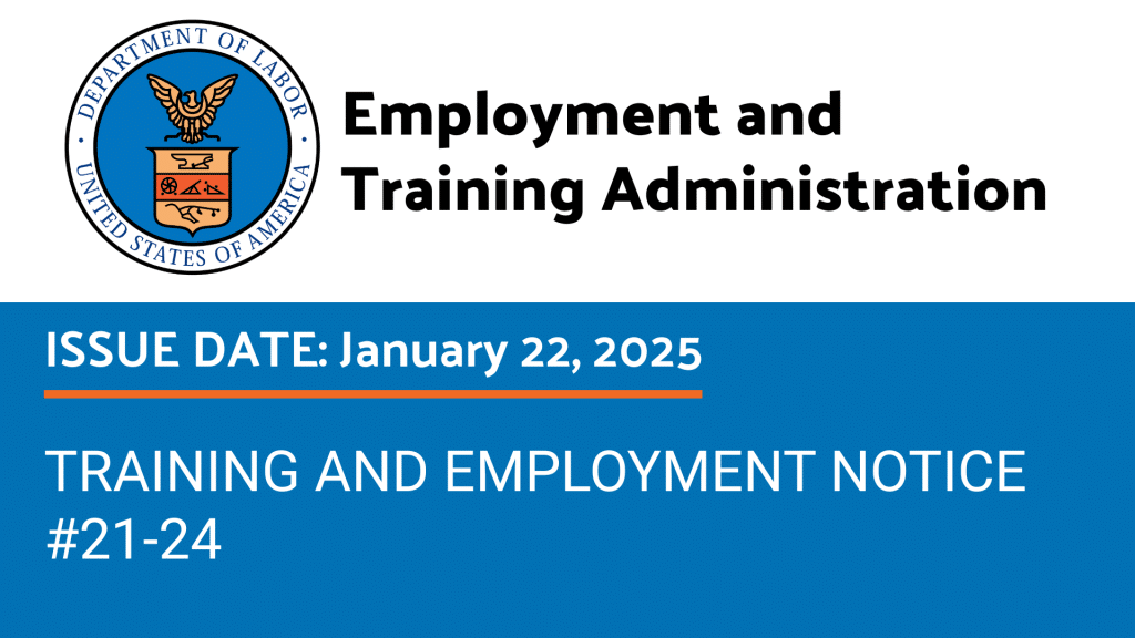 ETA issued TEN #21-24 requiring recipients of federal funding to immediately cease DEI/DEIA-related activities, in line with recent executive orders. Further guidance on allowable activities will follow.